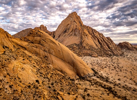 After lunch, we take a 2-hour drive to our destination at Brandberg Mountain. The highest point of the Brandberg, the Königstein, is 2,573 m above sea level and is located in the flat gravel plain of the Namib. On clear days, it can be seen from afar.
