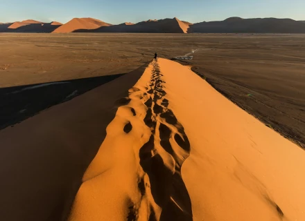 This morning we have a very early start for our guided excursion to Sossusvlei. We want to leave our lodge well before sunrise to ensure we are one of the first to enter the national park. From Sesriem, we continue into the desert area where the early morning light provides excellent photography opportunities. Once we arrive at the 4x4 parking area, we can explore this area on foot, with a walk around Dead Vlei and Sossusvlei.