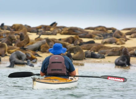 Namibia is a land of contrasts. Today, we move from the desert to the sea. On our way, we cross the Tropic of Capricorn and pass through the Gaub and Kuiseb passes, driving down to the dry riverbed at the bottom of the Kuiseb Canyon before climbing up the other side and seeing the spectacular desert landscape spread out before us. Once on the coast, we stop in Walvis Bay to enjoy the sight of the flamingos and other birds in the lagoons.