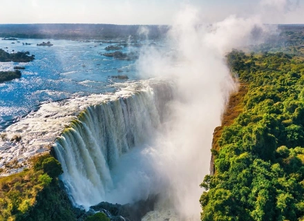 The roar of the falls can be heard from 40 kilometers away, while the spray and mist of the falling water can rise up to 400 meters high.